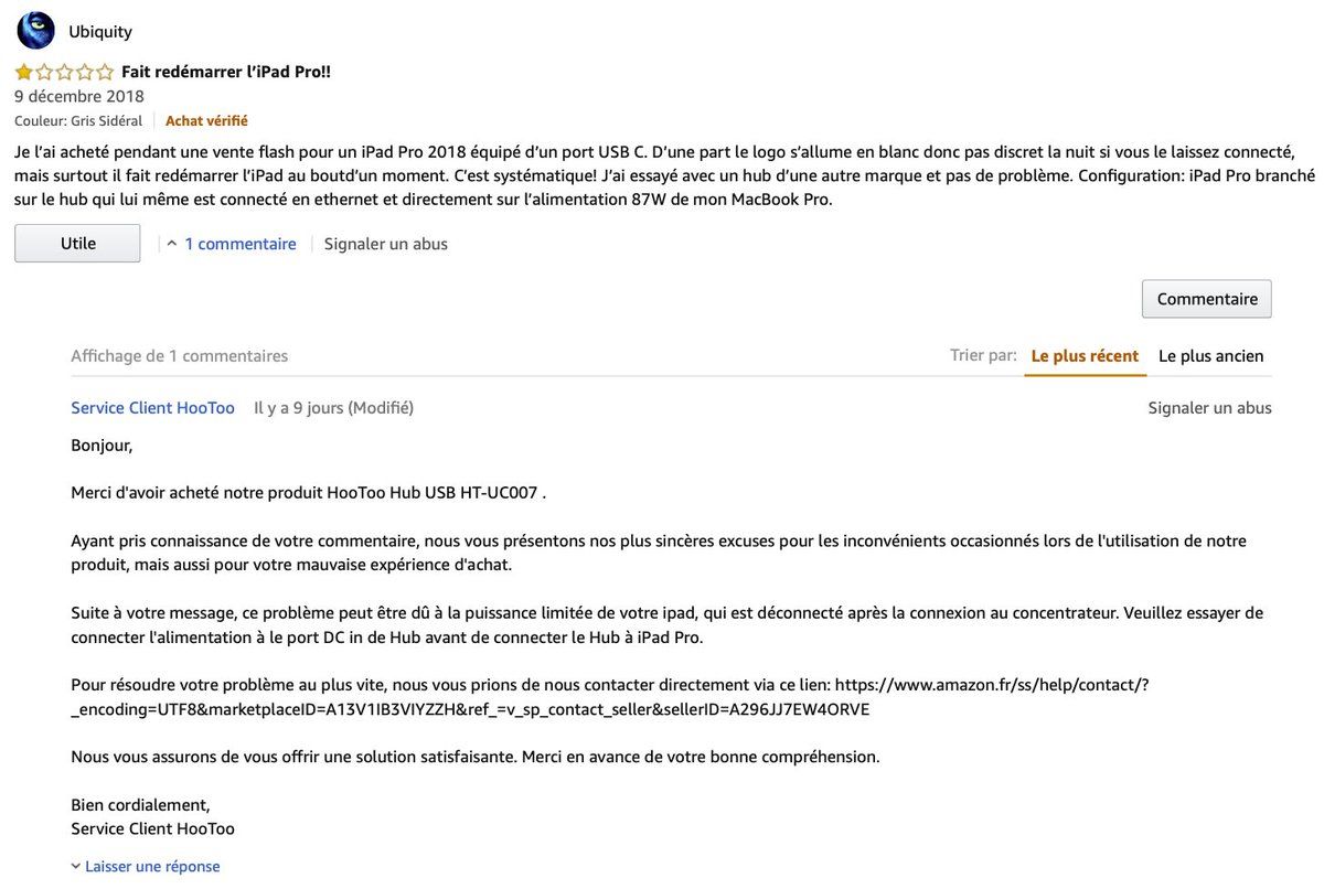 En cherchant un hub USB-C d’une marque plus connue, je suis tombé sur ce commentaire au sujet d’un modèle HooToo (amzn.to/2CpWYzt). J’ai l’impression qu’il y a des bugs quelque part et qu’il ne faut pas compter sur une prise en charge optimale à ce stade.