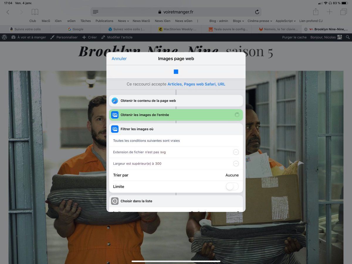 Je ne sais pas si c’est parce qu’on est vendredi, mais ces deux actions de Raccourcis restent souvent bloquées. J’ai testé sur plusieurs sites, ça rame sur la première ou la deuxième. Pas très fiable…