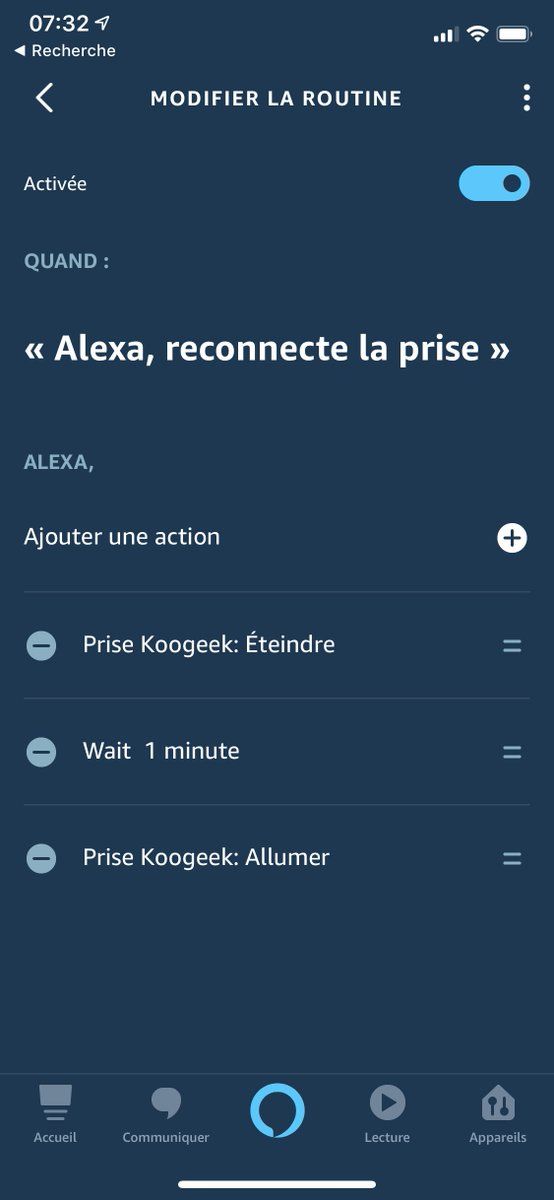 J’ai tellement de problèmes de déconnexions sur ma multiprise Koogeek que j’ai fini par la brancher sur une autre prise connectée fiable et créer une routine avec Alexa. 🤦♂️