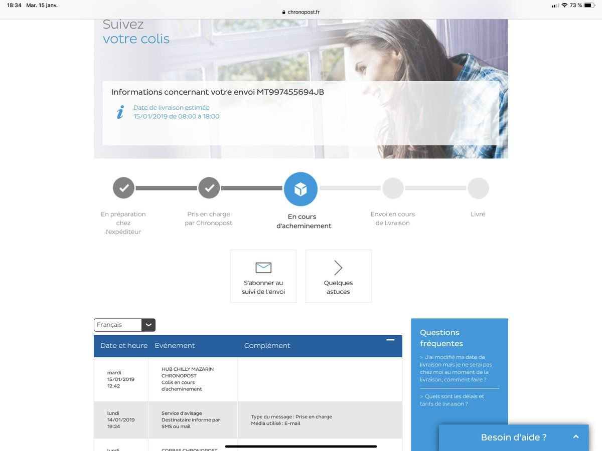 Vue l’heure et sachant que le colis était à Paris à la mi-journée, j’imagine que c’est mort pour aujourd’hui…