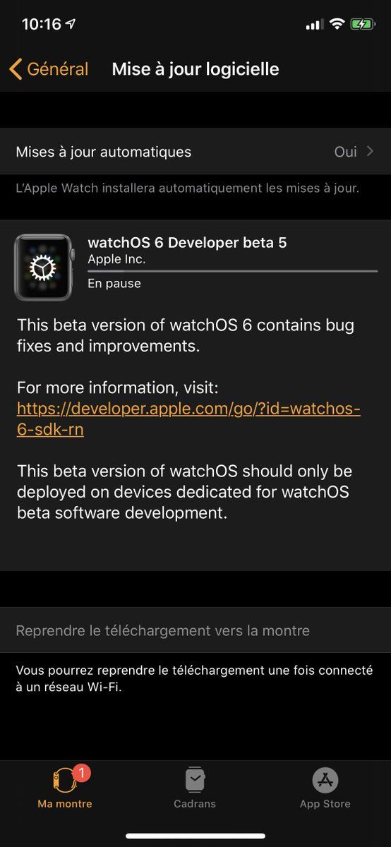 Même après réinitialisation, j’ai toujours ce bug. Donc ma montre reste en bêta 3 de watchOS 6 et je ne peux rien faire pour la mettre à jour…