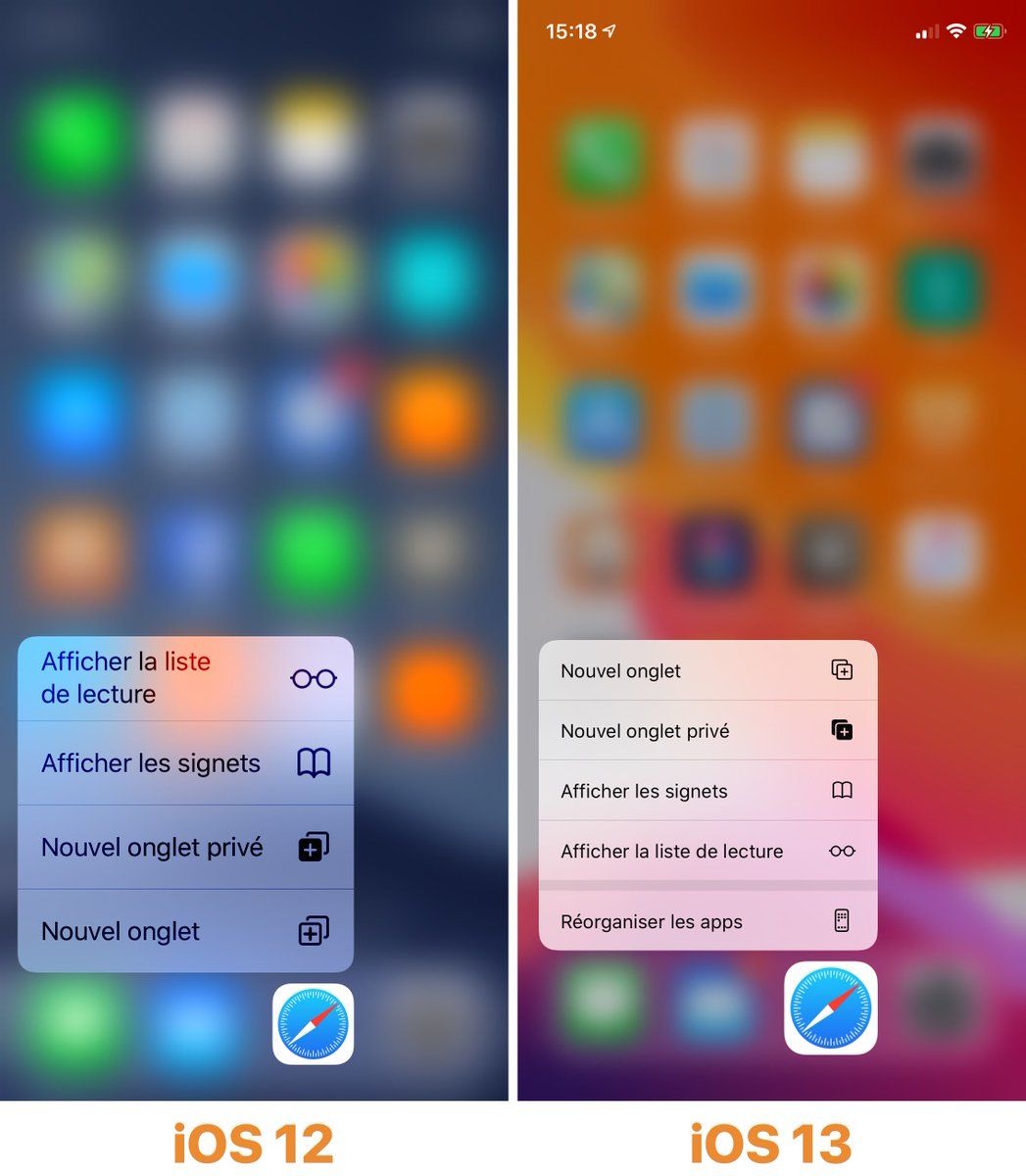 Je n’arrivais pas comprendre pourquoi les Actions rapides d’iOS 13 me semblaient beaucoup moins utiles. En voyant la capture, c’est évident : l’action la plus utile est désormais la plus éloignée de l’icône et donc du doigt… 🤦♂️