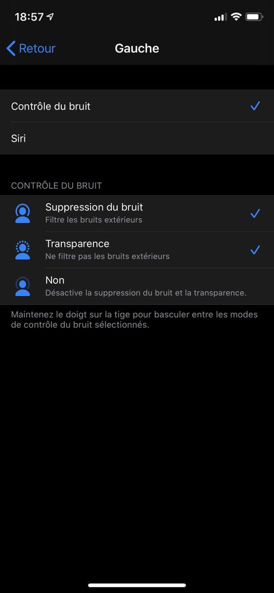 Truc le plus incompréhensible sur les AirPods Pro jusque-là : pourquoi est ce que je ne peux pas ajuster le volume en option là ? Je ne compte jamais désactiver l’isolation active et encore moins parler à Siri.