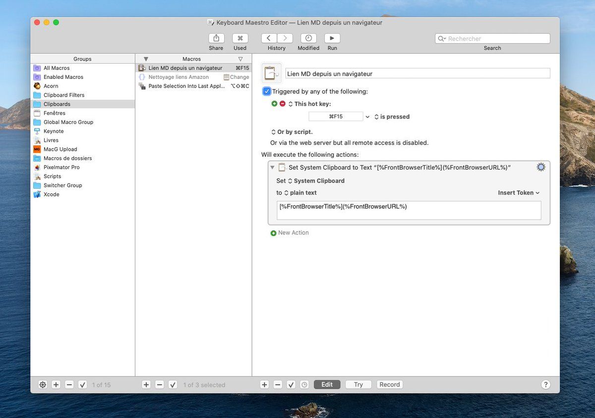 C’est quand même tellement simple et rapide Keyboard Maestro… quand je pense qu’à une époque, il fallait un script AppleScript de plusieurs dizaines de lignes pour faire ça*.