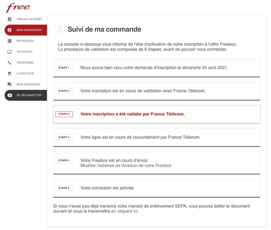 1. Pour passer d’Orange à @Freebox, une intervention est nécessaire sur ma ligne ADSL. Concrètement, la Livebox est coupée dès l’étape 3. Mais Free n’envoie pas de Freebox avant l’étape 5, donc occasionne une coupure systématique de service pendant plusieurs jours. Des génies… 🙄