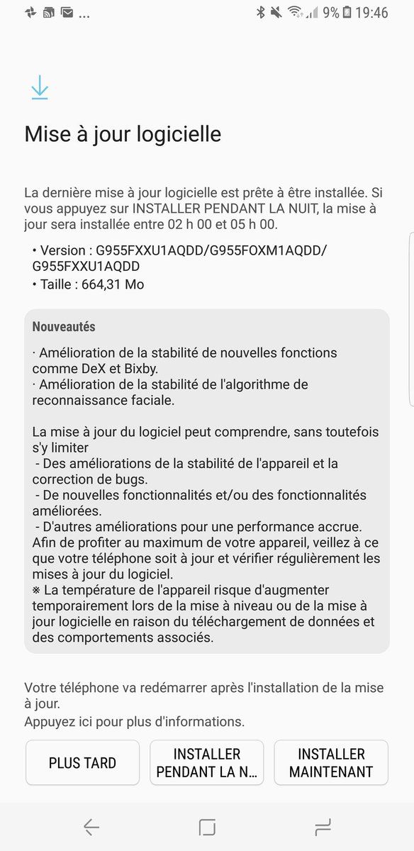 Première mise à jour de mon S8. Et moi qui croyais qu'il n'y avait jamais de mise à jour ! (Hein