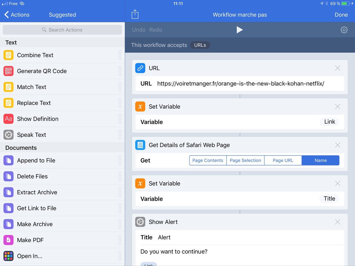 Je comprends vraiment rien à rien ou Workflow est cassé… iOS 11 peut-être ? 🤔