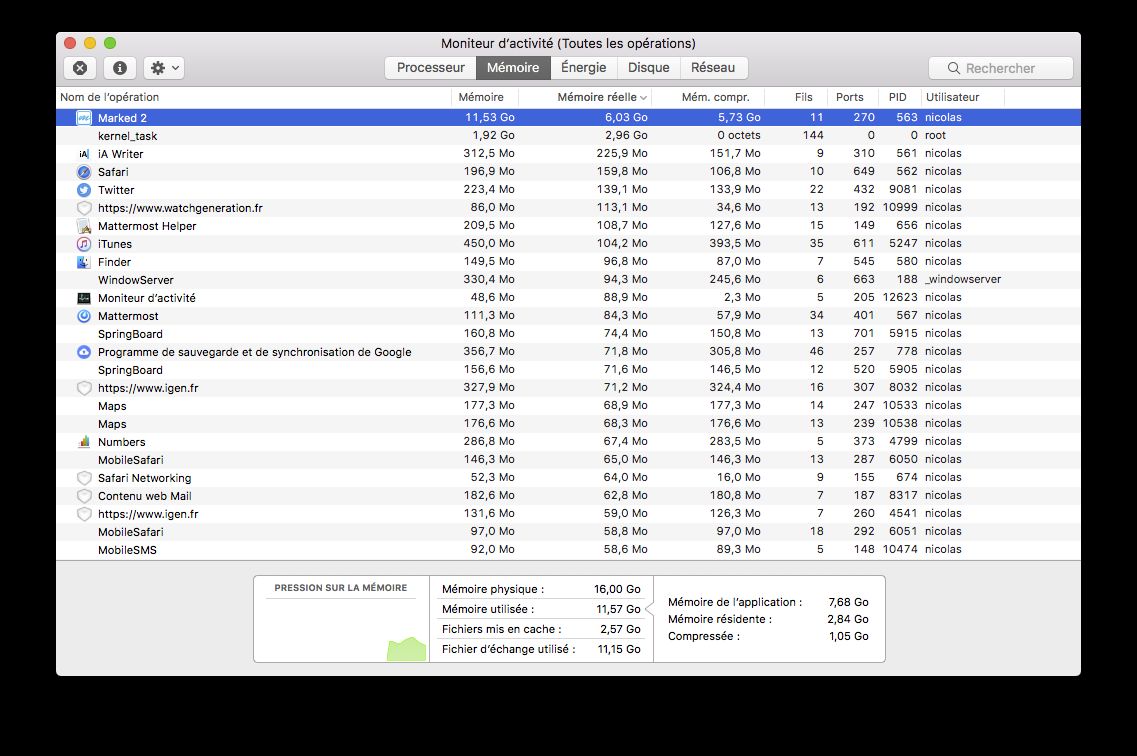 J’aime beaucoup Marked (outil de visualisation du Markdown) mais… 😱 Au moins, je sais pourquoi j’ai 16 Go de RAM.