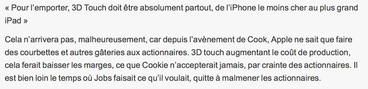 Comme chacun sait, Steve Jobs était le plus grand fan de 3D Touch au sein d’Apple. Depuis sa mort, forcément, la technologie est malmenée… #cqfd