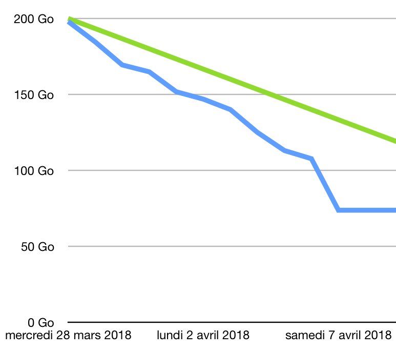 En vert, la consommation idéale pour qu’une 4G Box de 200 Go tienne un mois entier. En bleu, la consommation réelle. 😳 Et pourtant, on a coupé le streaming et les sauvegardes en ligne…
